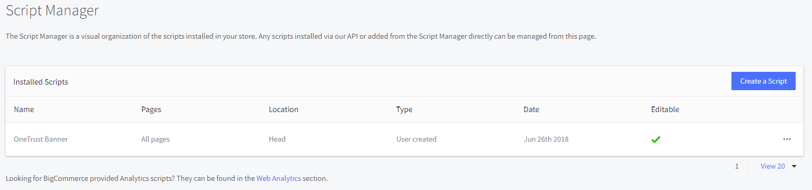 On the main navigation menu, select Storefront and then Script Manager. The Script Manager screen appears.
